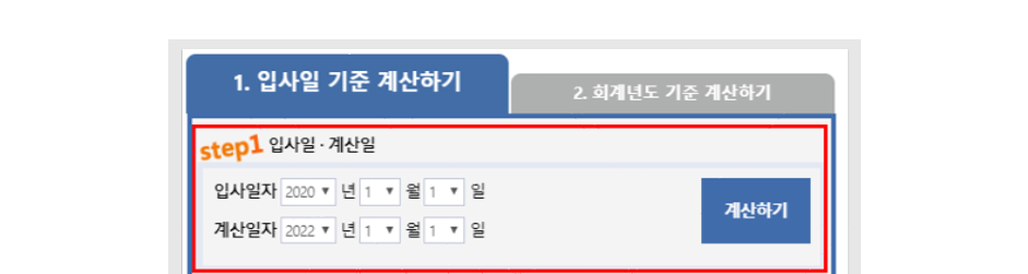 본인의 입사일자를 입력하고 계산하는 날짜를 입력한 다음 간편하게 계산하기를 하시면 됩니다.