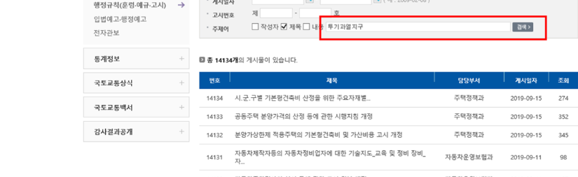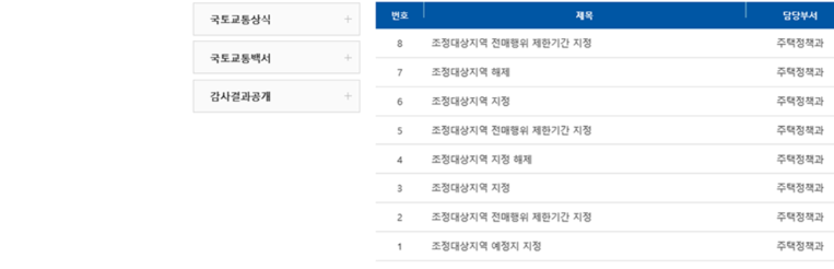위와 마찬가지로 투기과열지구 지정현황 내용도 국토교통부 홈페이지에서 찾아볼 수 있습니다.