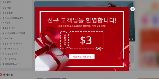 처음 입장하게되면 3달러라는 할인쿠폰을 받게 됩니다.